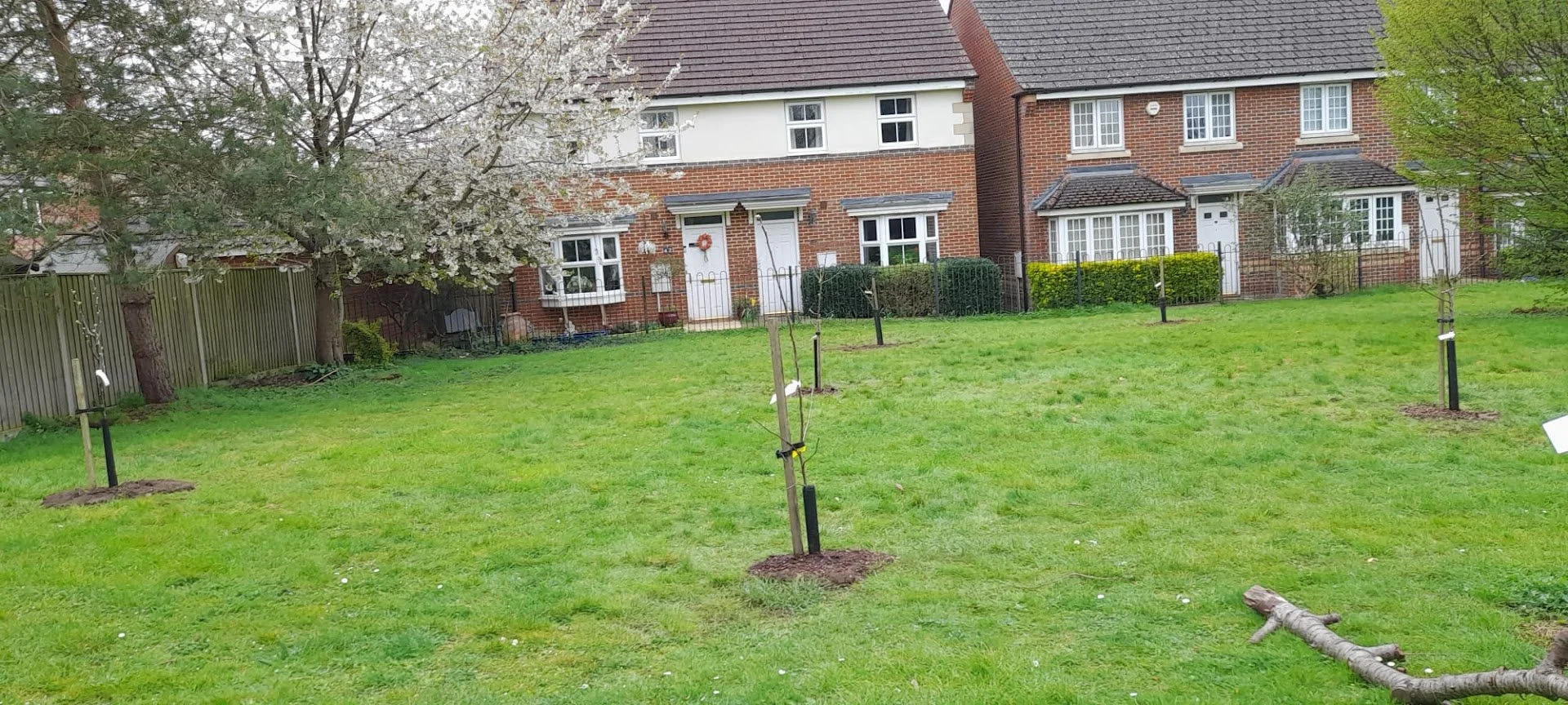 The six fruit trees were planted in the Recreation Park, Montague Drive, off Deadmans Lane (turning off Pinchington Lane).